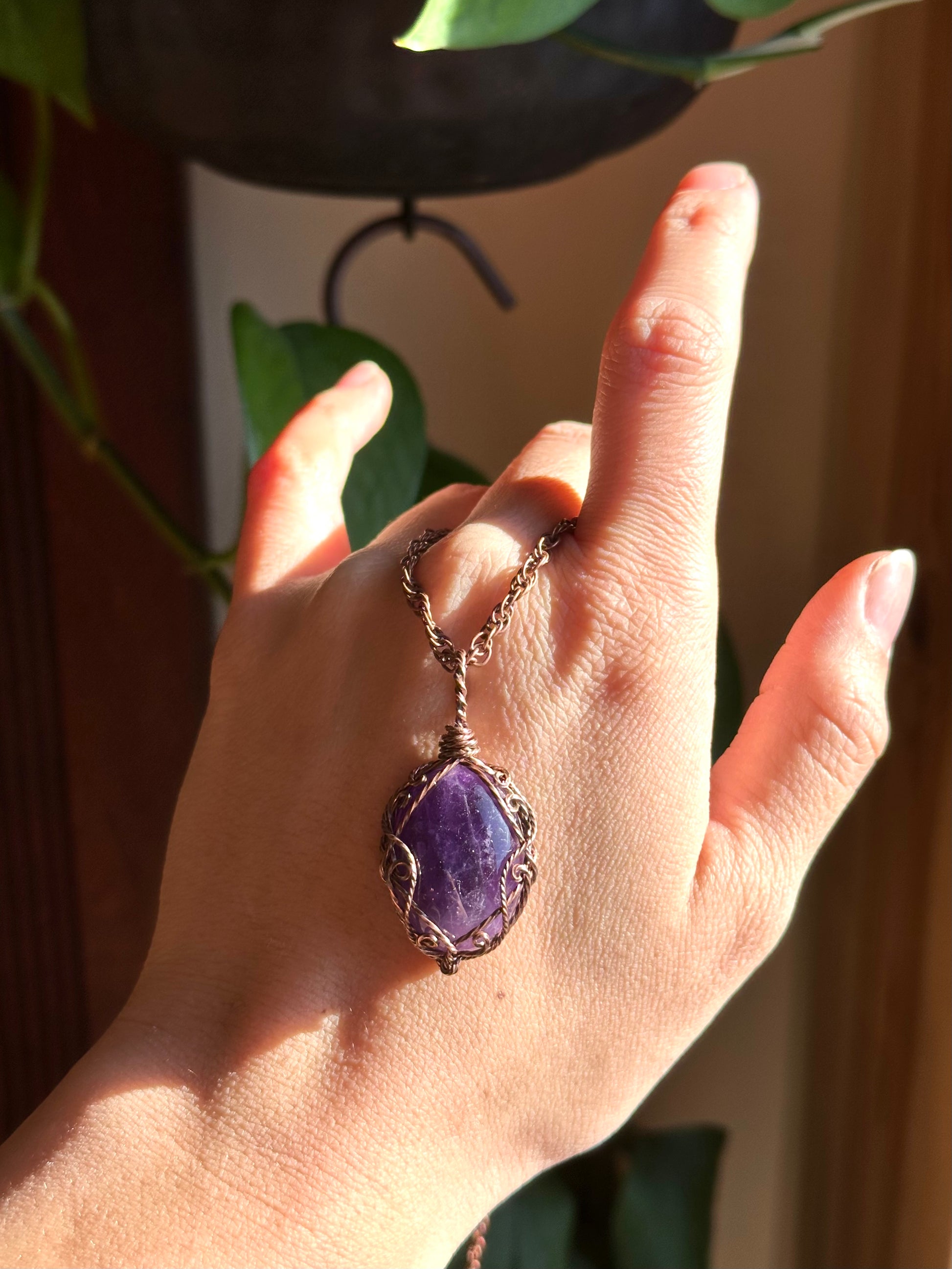 Framed in signature swirly Druid style ~ this amethyst is a deep royal purple and full of its own magic