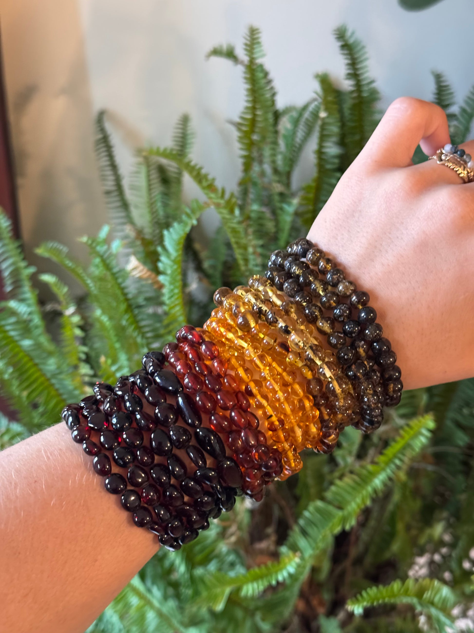 New Amber Bracelets available for a limited time only! Sold in singles to mix and match your next stack! Free replacement string available for your well worn friends