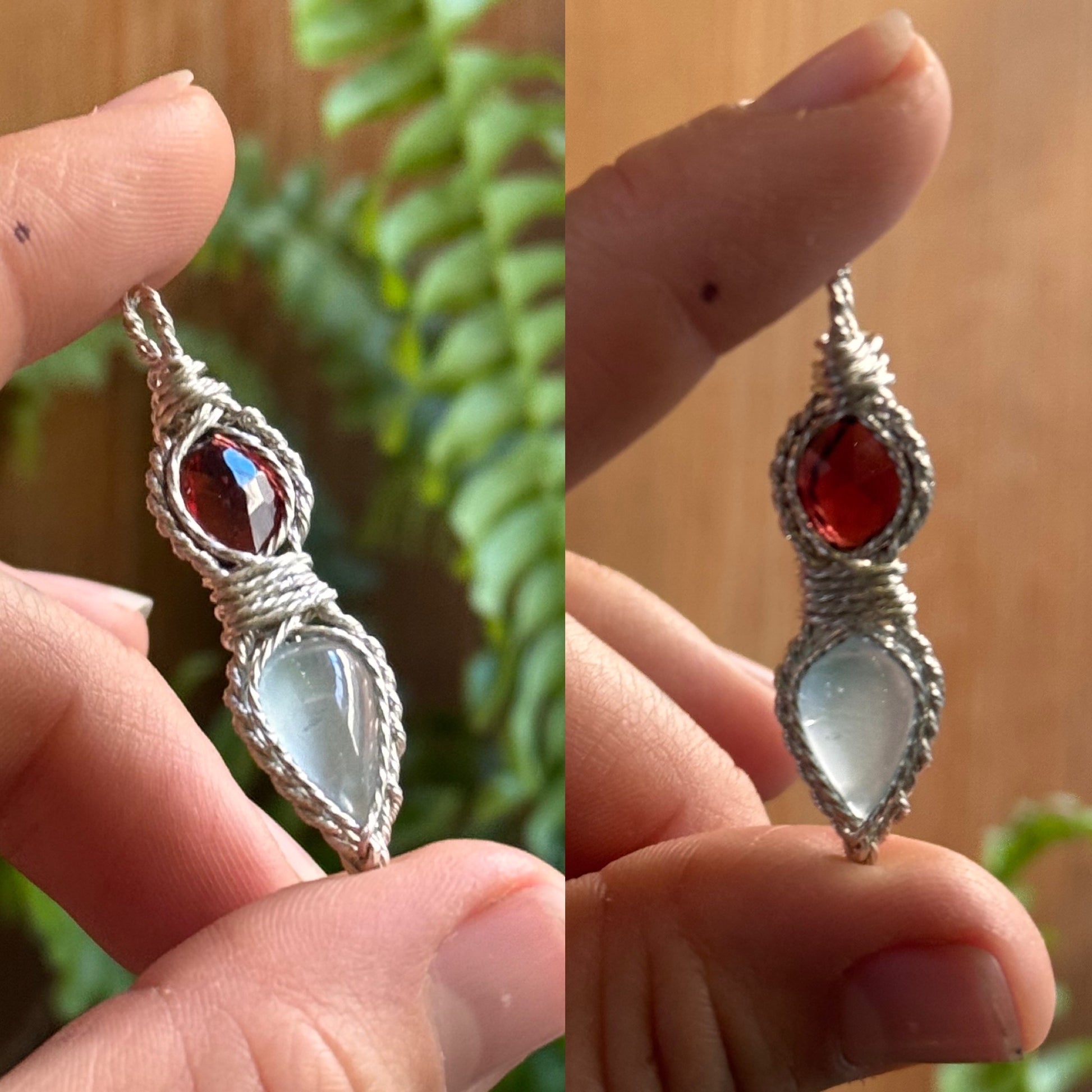 Custom Freyja made with faceted Garnet and genuine Aquamarine