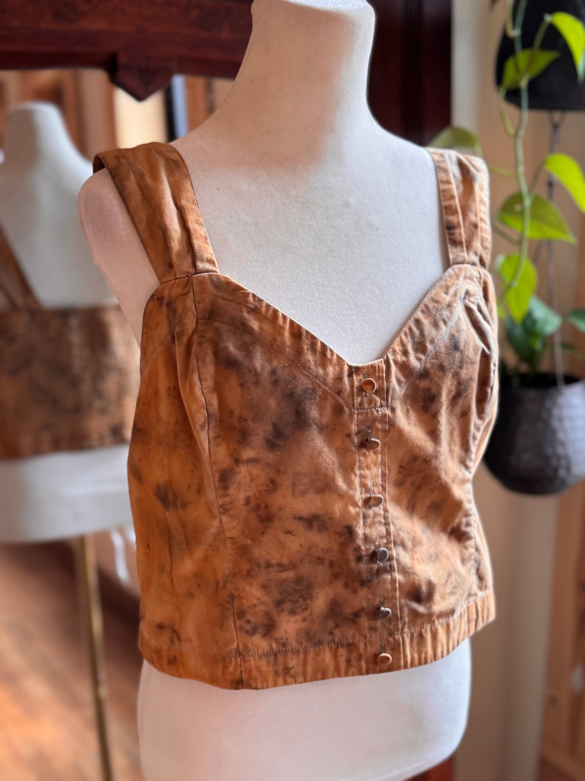 Eco Dye ~ Upcycled calico crop top size L