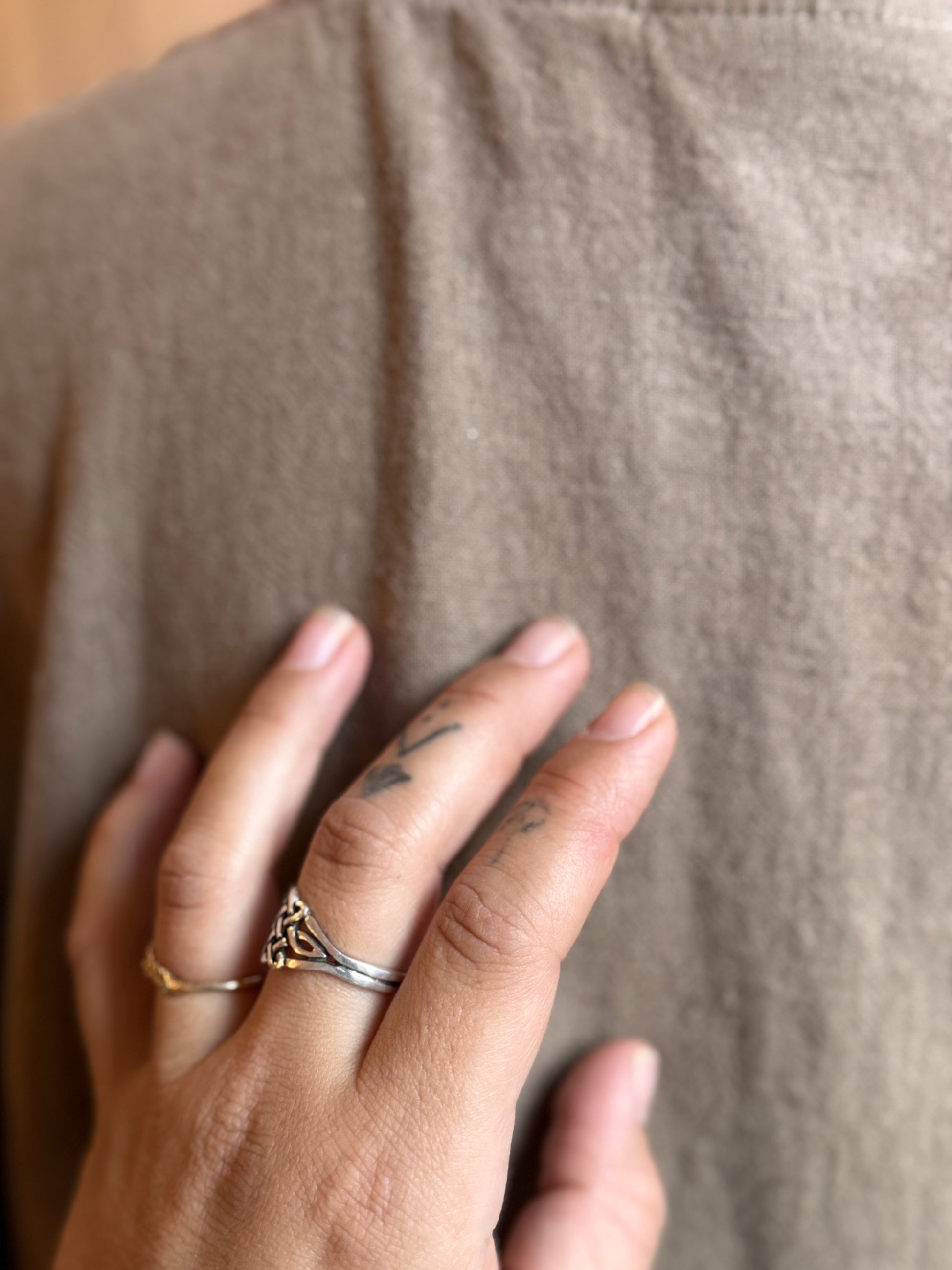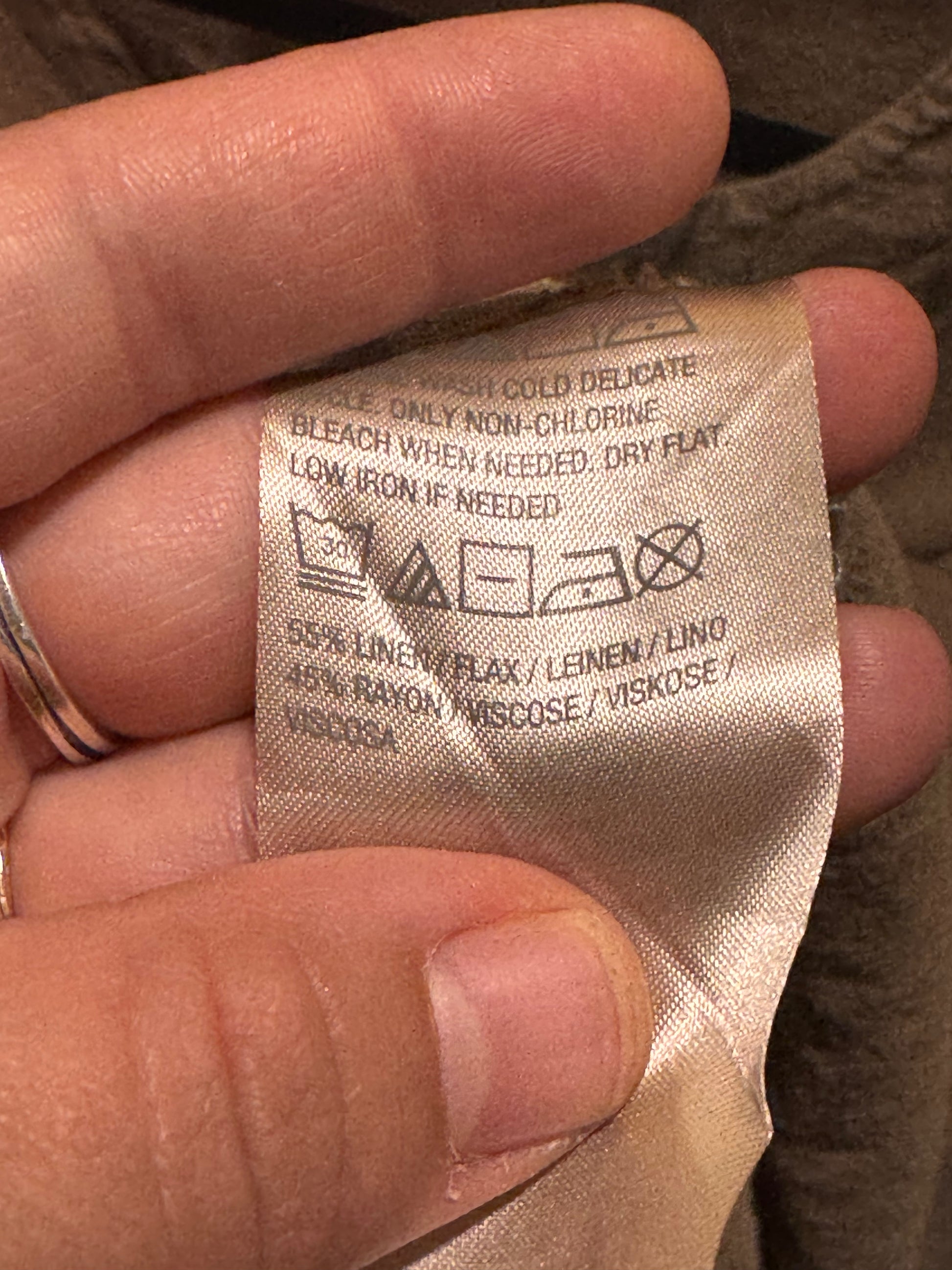 Most of these hand selected upcycled garments are 100% cotton with slight variations including rayon and silk. Bathed in a mix of water and walnuts, with possible steely rust water treatment