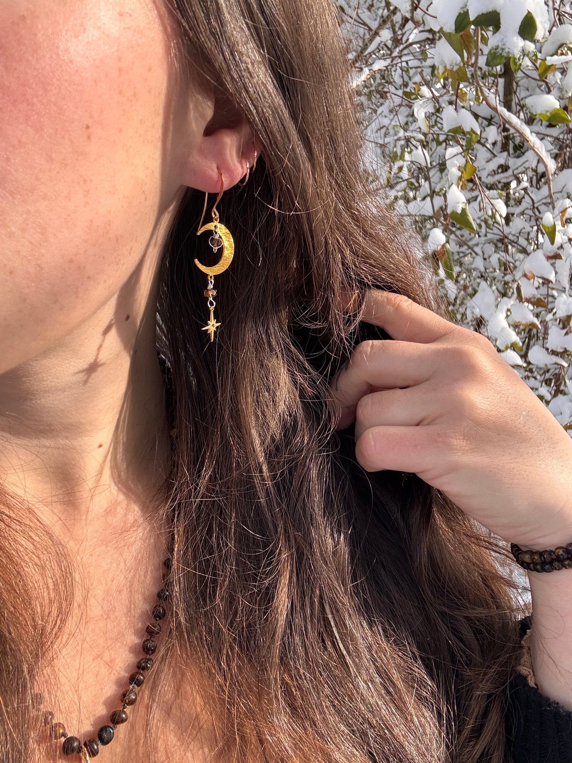 Solstice Moon Earrings ~ brown tourmaline